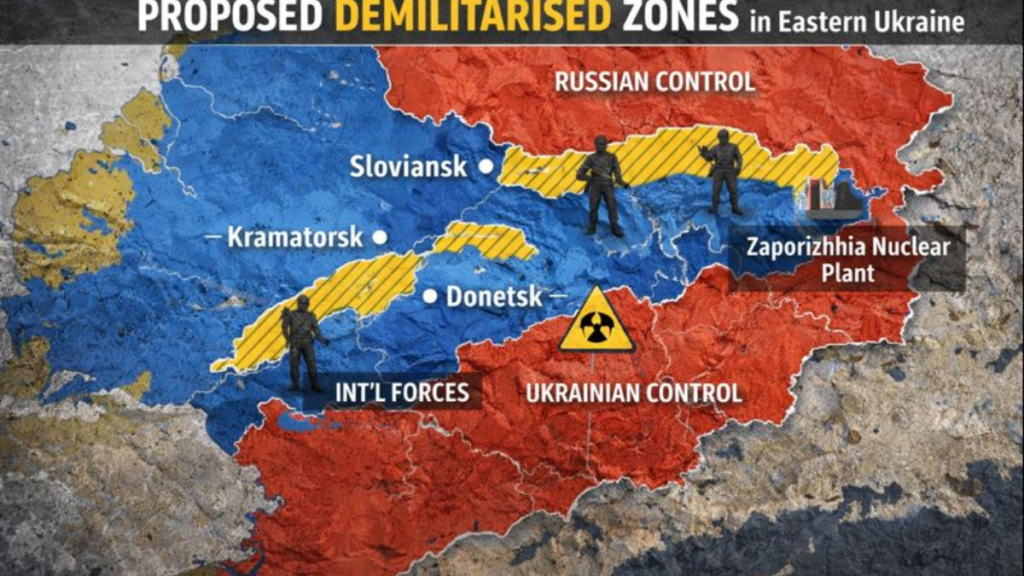 Key PointsUkrainian President Volodymyr Zelensky has unveiled a revised peace framework that introduces the idea of demilitarised and free economic zones in eastern Ukraine, marking the clearest signal yet of Kyiv’s willingness to explore territorial compromises under strict conditions.The Zelensky peace plan for Ukraine, finalised during US-Ukraine talks in Florida, is now awaiting Moscow’s response after American officials brief Russian negotiators.Zelensky Peace Plan for Ukraine: What Happened President Volodymyr Zelensky confirmed that the revised 20-point peace framework allows for limited Ukrainian troop withdrawals from parts of Donetsk, provided Russia mirrors the move and accepts internationally monitored demilitarised zones.Instead of a full pull-out, negotiators proposed: Demilitarised buffer zones Or a free economic zone administered and policed by Ukraine Any Ukrainian troop withdrawal would require matching Russian pullbacks of equal distance, ranging from five to 40 kilometres. Ukrainian President Volodymyr Zelensky has unveiled a revised peace framework that introduces the idea of demilitarised and free economic zones in eastern Ukraine, marking the clearest signal yet of Kyiv’s willingness to explore territorial compromises under strict conditions. The Zelensky peace plan for Ukraine, finalised during US-Ukraine talks in Florida, is now awaiting Moscow’s response after American officials brief Russian negotiators. Zelensky Peace Plan for Ukraine: What Happened President Volodymyr Zelensky confirmed that the revised 20-point peace framework allows for limited Ukrainian troop withdrawals from parts of Donetsk, provided Russia mirrors the move and accepts internationally monitored demilitarised zones. Instead of a full pull-out, negotiators proposed: Demilitarised buffer zones Or a free economic zone administered and policed by Ukraine Any Ukrainian troop withdrawal would require matching Russian pullbacks of equal distance, ranging from five to 40 kilometres. The plan also includes: Strong security guarantees from the US, NATO allies, and Europe A non-aggression pact with Russia An internationally monitored contact line to prevent infiltration Why the Zelensky Peace Plan for Ukraine Matters The plan marks a shift from rigid territorial red lines to conditional disengagement, aiming to halt the war without surrendering sovereignty. Kyiv insists any free economic or demilitarised zone must remain under Ukrainian administration. The Zelensky peace plan for Ukraine matters because: It shifts talks from abstract ceasefires to mapped military disengagement It preserves Ukrainian sovereignty over any economic zone It tests whether Moscow will accept limits rather than full territorial control Russia currently occupies most of Donetsk and has warned it would seize the rest by force if Kyiv refuses to withdraw. Key Sticking Points Zelensky made clear that: Ukrainian police – not Russian forces – would control any zone International troops would monitor the front line A national referendum must approve the final deal He also rejected a US-backed proposal for joint control of the Zaporizhzhia nuclear plant, insisting Russian forces must leave the site entirely. The plan further demands Russian withdrawal from Dnipropetrovsk, Mykolaiv, Sumy, and Kharkiv regions. What Happens Next in the Zelensky Peace Plan for Ukraine US officials are expected to brief Moscow, after which Russia will issue its formal response. Any breakthrough would still require: Direct leader-level negotiations Agreement on territorial enforcement A nationwide Ukrainian referendum Talks also continue on a $200 billion Ukraine investment fund and the timing of post-war elections, which remain contentious under martial law. While the framework stops short of guaranteeing NATO membership, it supports EU accession with a defined timeline and allows Ukraine to maintain a peacetime military force of up to 800,000 troops. Bottom Line The Zelensky peace plan for Ukraine does not end the war — but it redraws the negotiating map. Whether Moscow accepts limits instead of land may decide what comes next. Post navigation Powerball Jackpot Christmas Eve Climbs to $1.7 Billion After No Winner Venezuela Accuses US of Extortion Over Seized Oil Tankers